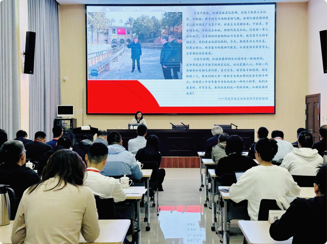 培训期间,冯琳老师以《红旗渠精神及其当代启示》为题,从“红旗渠”“红旗渠精神”“当代启示”三个维度,“立足本地、依靠自身的自力更生精神”“战天斗地、百折不挠的艰苦创业精神”“顾全大局、齐心协力的团结协作精神”“不计得失、不怕牺牲的无私奉献精神”四个方面,对红旗渠精神进行了深入浅出的系统阐述,引导大家深入了解了红旗渠建设历史背景与重大意义,深刻体悟红旗渠精神内涵精髓及其时代价值。
